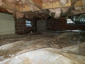It’s also important to have a vapor barrier. This plastic or foil sheet covers the crawl space floor and walls to keep moisture at bay.
