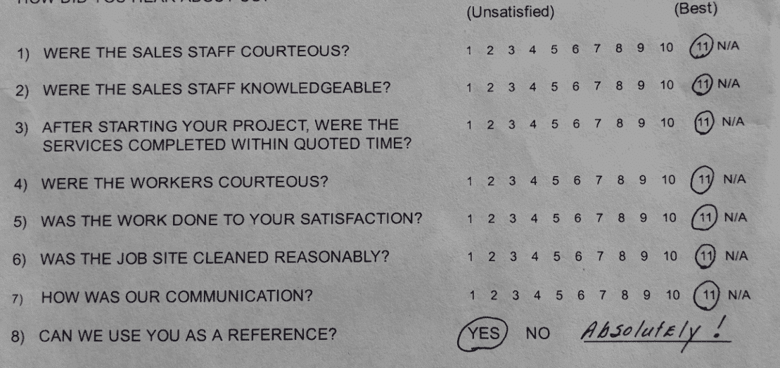 “Favian, Willy, JD, and Mitch were VERY respectful/careful of my home/property. Our Questions were answered patiently – and if unknown they made a call to check it out. I am very confident the job was done well. I would not hesitate to call the again if needed!!”