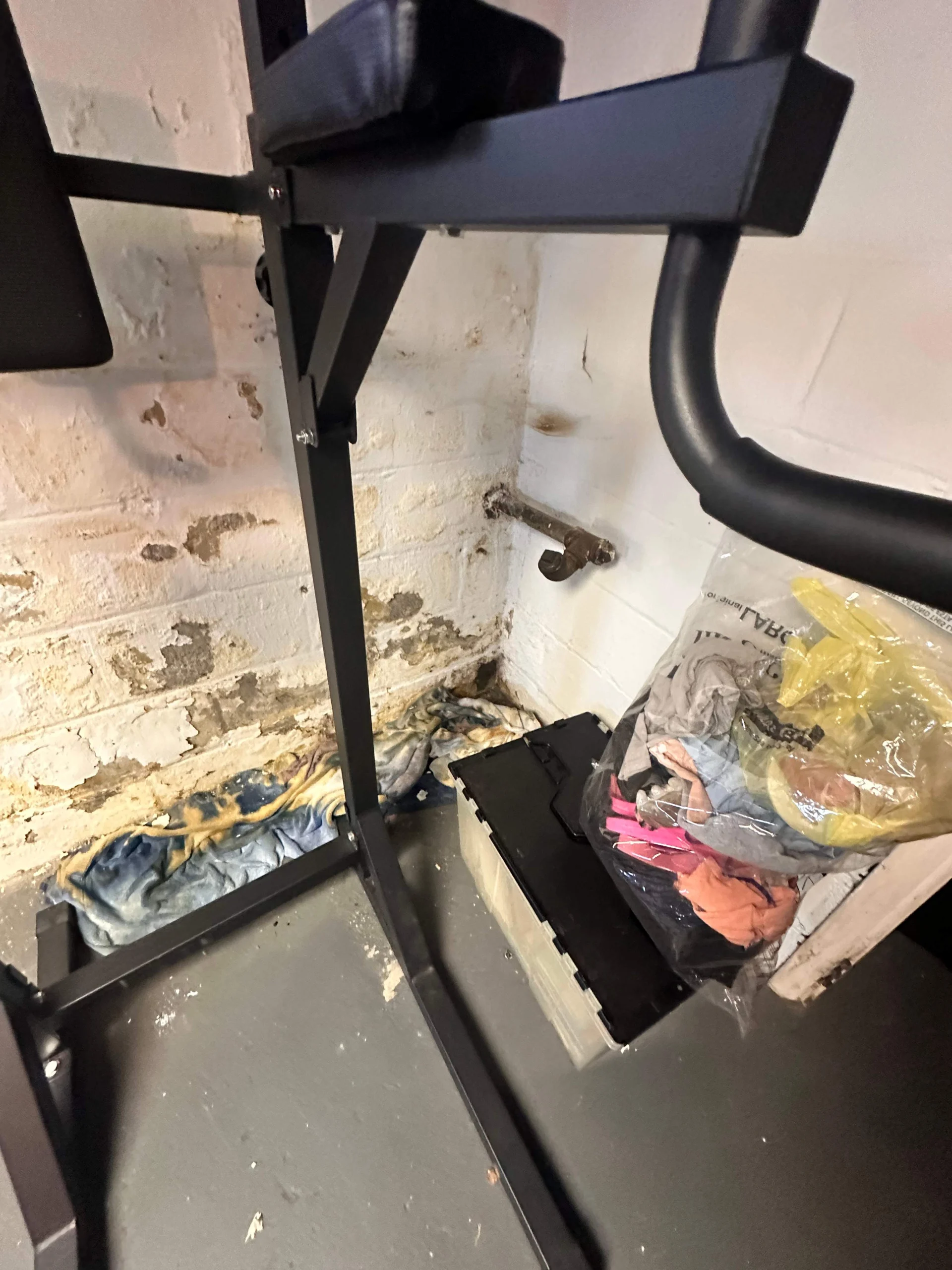 There was visible evidence of water intrusion along the foundation walls and at the floor joint. In several areas, concrete showed signs of past seepage. The walls had mildew buildup, and the lower portions of the foundation were showing consistent dampness. This wasn’t just a one-time leak after a heavy rain. It was an ongoing groundwater issue.
